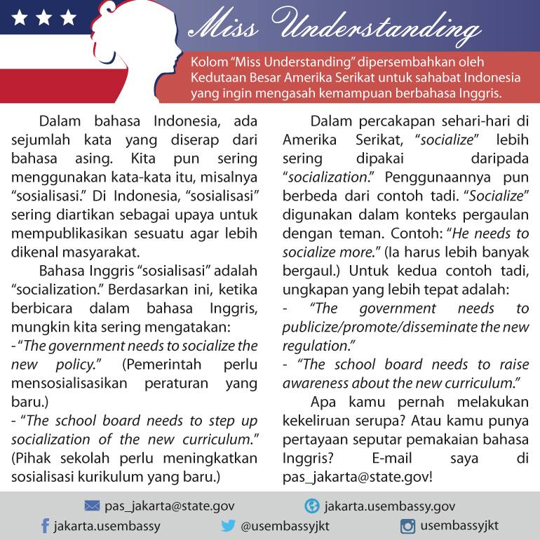 Usembassyjkt On Twitter Ternyata Dalam Bahasa Inggris Socialize Dan Socialization Artinya Berbeda Loh Missunderstanding Jelaskan Untukmu Https T Co Tpbh8e5xgi
